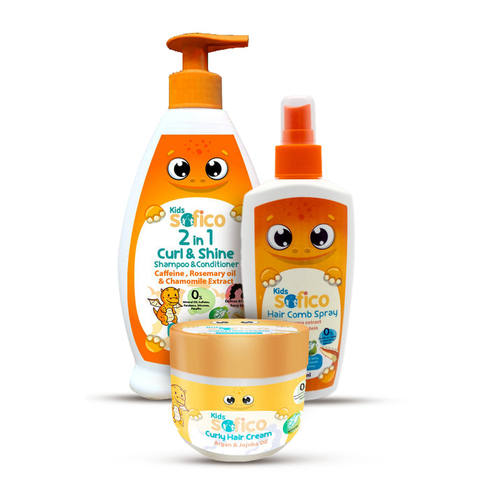 The Curly Kids Pack is specially designed to care for your child’s curly hair. This set includes a Curl & Shine Shampoo, Curly Cream, and Comb Spray, all formulated with gentle, nourishing ingredients to define curls, reduce frizz, and leave hair soft, shiny, and manageable. Perfect for everyday use, it makes curl care easy, fun, and effective.